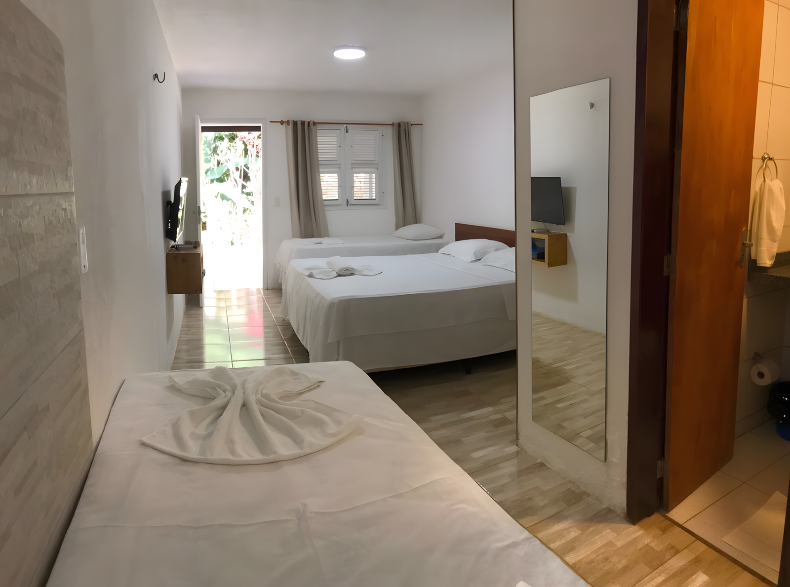 Espaçosa e acolhedora, perfeita para famílias ou grupos. Conta com uma cama king e duas camas de solteiro, varanda privativa e todo o conforto para uma estadia inesquecível.