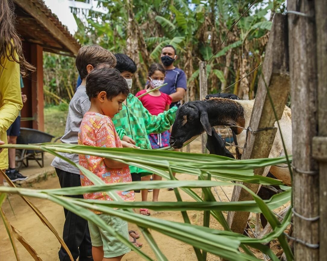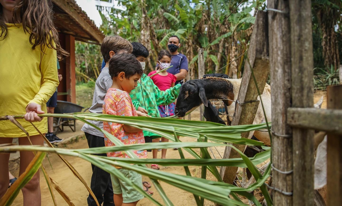 Galinhas, patos, coelhos e muito mais. As crianças alimentam, tocam e aprendem sobre os animais de perto — uma conexão real com a natureza que a cidade não oferece.